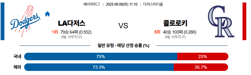 LA다저스 대 콜로라도 MLB 09월09일 맞대결 생중계, 스포츠중계, 스포츠분석