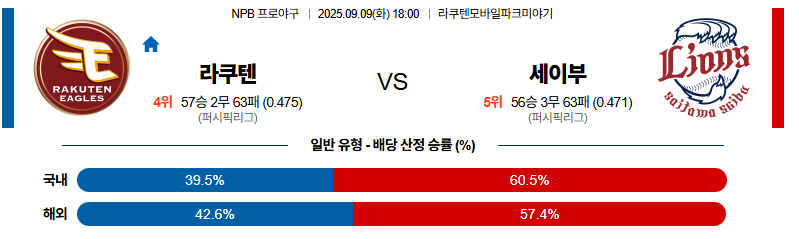 라쿠텐 대 세이부 NPB 09월09일 맞대결 생중계, 스포츠중계, 스포츠분석