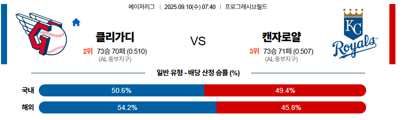 클리블랜드 대 캔자스시티 MLB 09월10일 맞대결 생중계, 스포츠중계, 스포츠분석