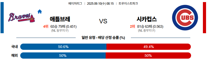 애틀랜타 대 시카고컵스 MLB 09월10일 맞대결 생중계, 스포츠중계, 스포츠분석