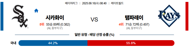 시카고W 대 탬파베이 MLB 09월10일 맞대결 생중계, 스포츠중계, 스포츠분석