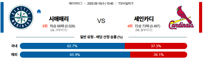 시애틀 대 세인트루이스 MLB 09월10일 맞대결 생중계, 스포츠중계, 스포츠분석