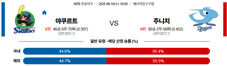 야쿠르트 대 주니치 NPB 09월10일 맞대결 생중계, 스포츠중계, 스포츠분석
