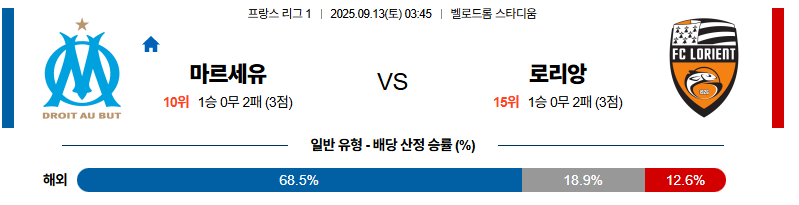 마르세유 대 로리앙 리그앙 09월13일 맞대결 생중계, 스포츠중계, 스포츠분석