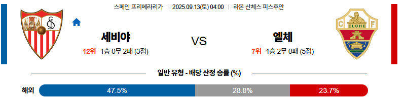 세비야 대 엘체 라리가 09월13일 맞대결 생중계, 스포츠중계, 스포츠분석