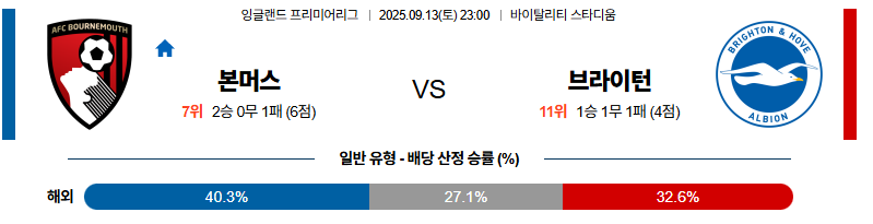 본머스 대 브라이턴 프리미어리그 09월13일 맞대결 생중계, 스포츠중계, 스포츠분석