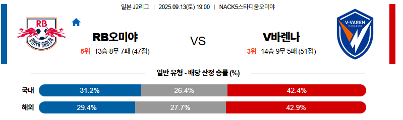 오미야 대 나가사키 J리그2 09월13일 맞대결 생중계, 스포츠중계, 스포츠분석