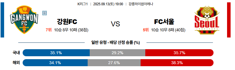 강원 대 FC서울 K리그1 09월13일 맞대결 생중계, 스포츠중계, 스포츠분석