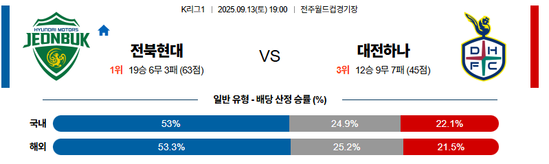 전북 대 대전 K리그1 09월13일 맞대결 생중계, 스포츠중계, 스포츠분석