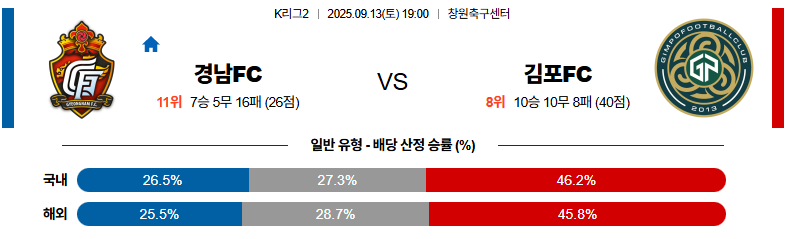 경남 대 김포 K리그2 09월13일 맞대결 생중계, 스포츠중계, 스포츠분석
