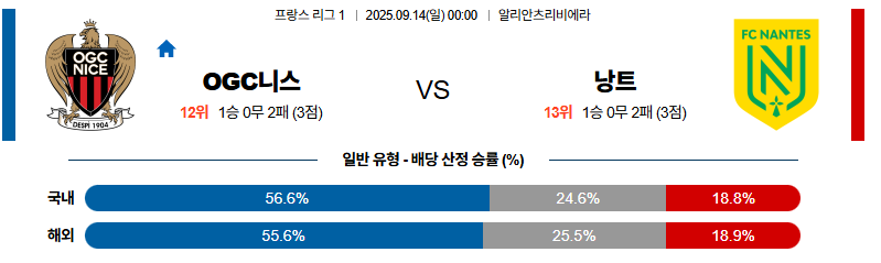 니스 대 낭트 리그앙 09월14일 맞대결 생중계, 스포츠중계, 스포츠분석
