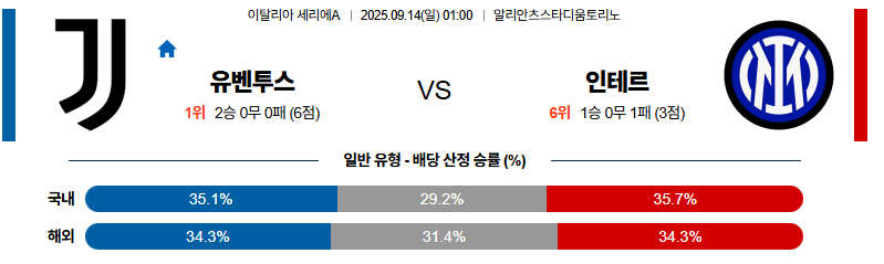 유벤투스 대 인터밀란 세리에A 09월14일 맞대결 생중계, 스포츠중계, 스포츠분석