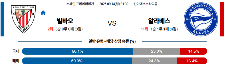 빌바오 대 알라베스 라리가 09월14일 맞대결 생중계, 스포츠중계, 스포츠분석
