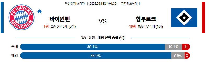 바이에른뮌헨 대 함부르크 분데스리가 09월14일 맞대결 생중계, 스포츠중계, 스포츠분석