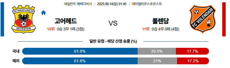 고어헤드 대 폴렌담 에레디비지 09월14일 맞대결 생중계, 스포츠중계, 스포츠분석