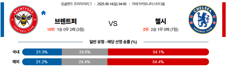 브렌트퍼드 대 첼시 프리미어리그 09월14일 맞대결 생중계, 스포츠중계, 스포츠분석