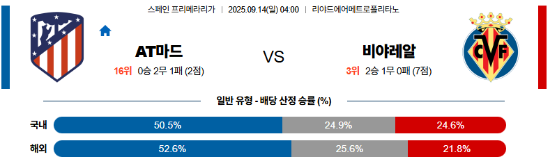 AT마드리드는 바리오스의 공간 침투와 쇠를로트의 제공권, 시메오네의 압박이 맞물리며 전술적으로 균형 잡힌 공격을 전개할 수 있습니다. 반면 비야레알은 수비와 미드필더 간격 문제를 해결하지 못하면 실점 위기를 반복적으로 맞이할 가능성이 큽니다. 따라서 이번 맞대결은 홈팀 AT마드리드가 전술적 상성과 흐름 우위를 앞세워 승리를 가져갈 시나리오가 가장 설득력 있습니다.