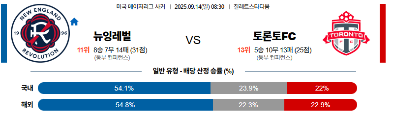 뉴잉글랜드 대 토론토 메이저리그사커 09월14일 맞대결 생중계, 스포츠중계, 스포츠분석