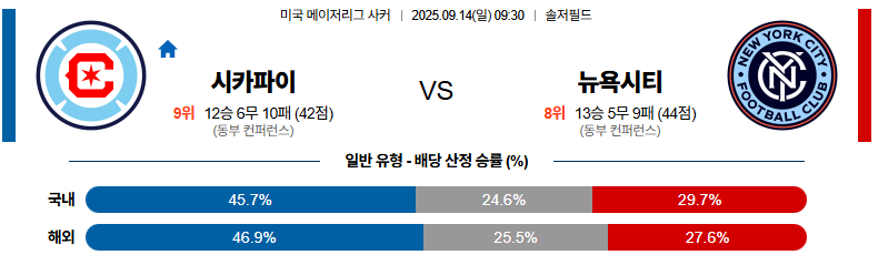시카고 대 뉴욕시티 메이저리그사커 09월14일 맞대결 생중계, 스포츠중계, 스포츠분석