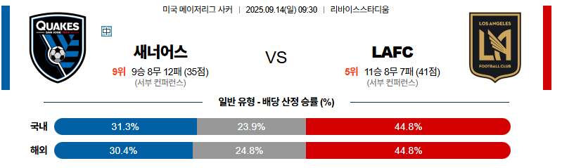 산호세 대 LAFC 메이저리그사커 09월14일 맞대결 생중계, 스포츠중계, 스포츠분석