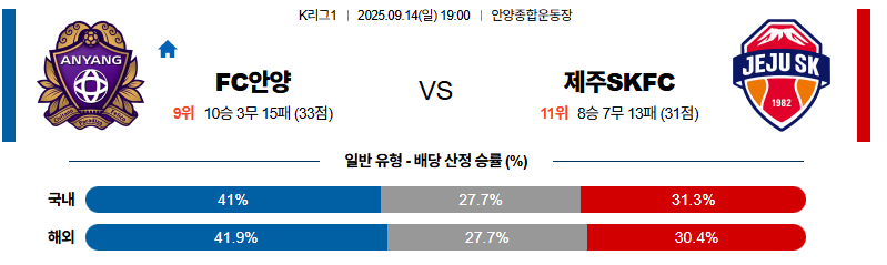 안양 대 제주 K리그1 09월14일 맞대결 생중계, 스포츠중계, 스포츠분석