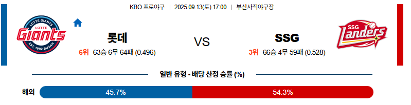 롯데 대 SSG KBO 09월13일 맞대결 생중계, 스포츠중계, 스포츠분석