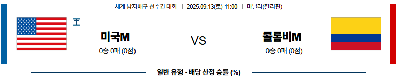 미국 대 콜롬비아 세계남자배구선수권대회 09월13일 맞대결 생중계, 스포츠중계, 스포츠분석