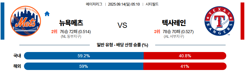 뉴욕메츠 대 텍사스 MLB 09월14일 맞대결 생중계, 스포츠중계, 스포츠분석