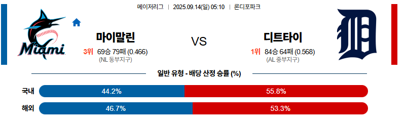 마이애미 대 디트로이트 MLB 09월14일 맞대결 생중계, 스포츠중계, 스포츠분석