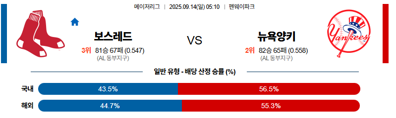 보스턴 대 뉴욕양키스 MLB 09월14일 맞대결 생중계, 스포츠중계, 스포츠분석