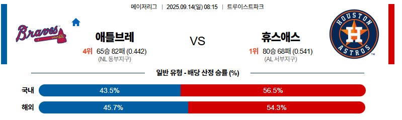 애틀랜타 대 휴스턴 MLB 09월14일 맞대결 생중계, 스포츠중계, 스포츠분석