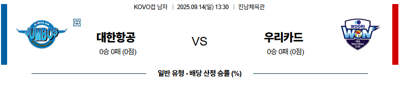 대한항공 대 우리카드 KOVO컵 09월14일 맞대결 생중계, 스포츠중계, 스포츠분석