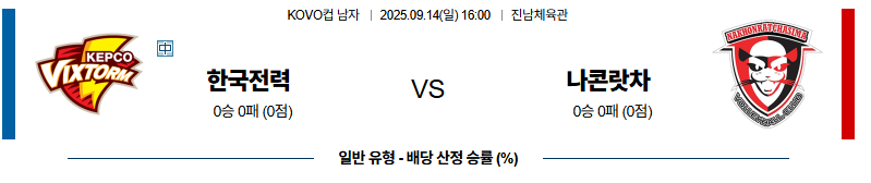 한국전력 대 나콘랏차 KOVO컵 09월14일 맞대결 생중계, 스포츠중계, 스포츠분석