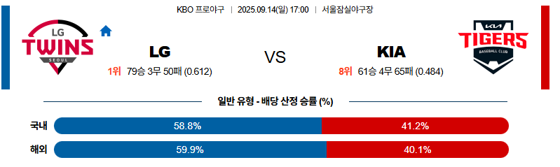 LG 대 KIA KBO 09월14일 맞대결 생중계, 스포츠중계, 스포츠분석
