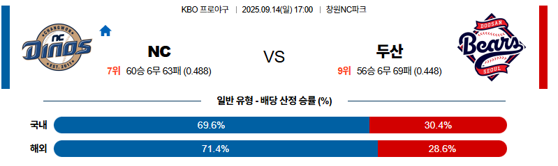 NC 대 두산 KBO 09월14일 맞대결 생중계, 스포츠중계, 스포츠분석