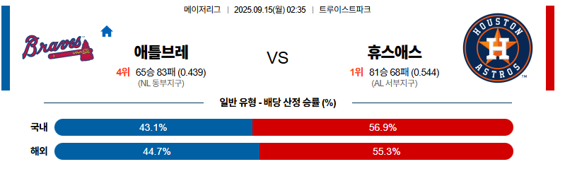 애틀랜타 대 휴스턴 MLB 09월15일 맞대결 생중계, 스포츠중계, 스포츠분석