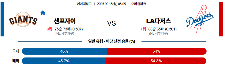 샌프란시스코 대 LA다저스 MLB 09월15일 맞대결 생중계, 스포츠중계, 스포츠분석