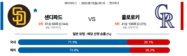 샌디에이고 대 콜로라도 MLB 09월15일 맞대결 생중계, 스포츠중계, 스포츠분석