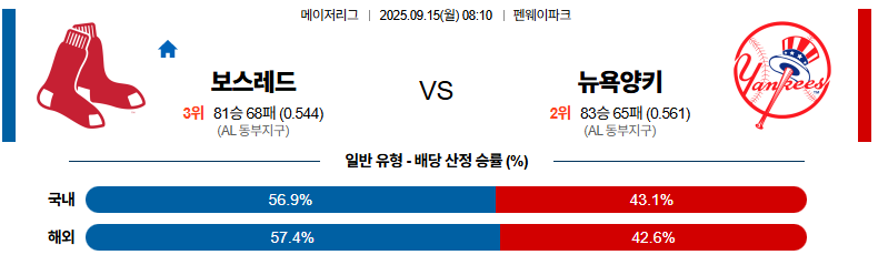 보스턴 대 뉴욕양키스 MLB 09월15일 맞대결 생중계, 스포츠중계, 스포츠분석