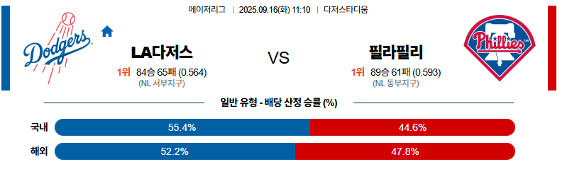 LA다저스 대 필라델피아 MLB 09월16일 맞대결 생중계, 스포츠중계, 스포츠분석