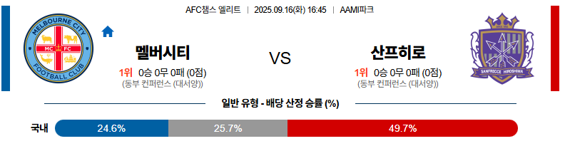 멜버른시티 대 산프레체히로시마 AFC챔피언스리그 09월16일 맞대결 생중계, 스포츠중계, 스포츠분석
