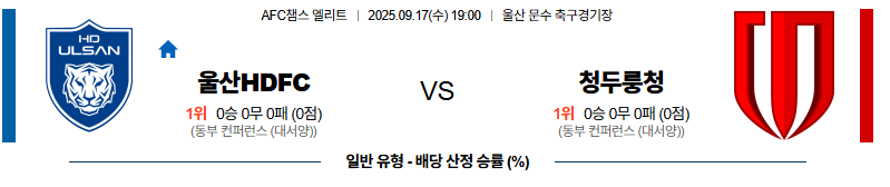울산 대 청두룽청 AFC챔피언스리그 09월17일 맞대결 생중계, 스포츠중계, 스포츠분석