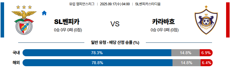 벤피카 대 카라바흐 UEFA챔피언스리그 09월17일 맞대결 생중계, 스포츠중계, 스포츠분석