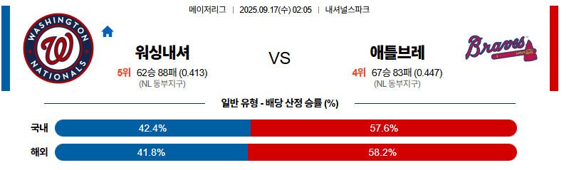 워싱턴 대 애틀랜타 MLB 09월17일 맞대결 생중계, 스포츠중계, 스포츠분석