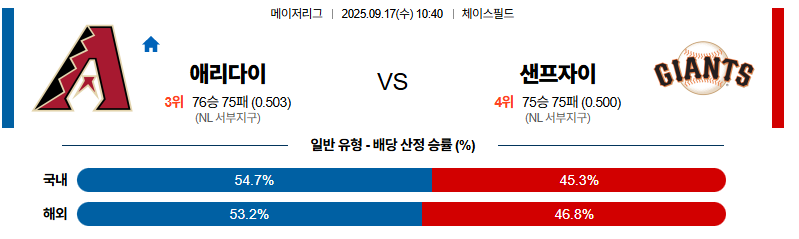 애리조나 대 샌프란시스코 MLB 09월17일 맞대결 생중계, 스포츠중계, 스포츠분석