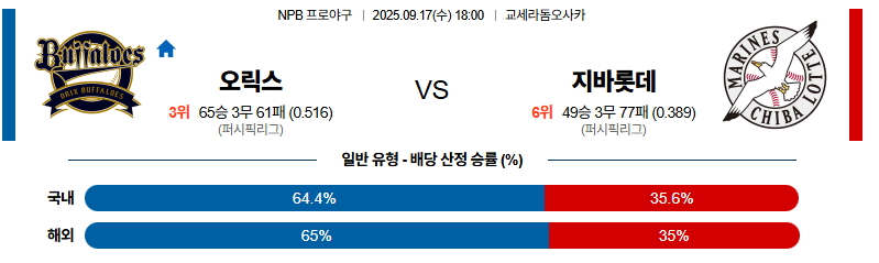 오릭스 대 지바롯데 NPB 09월17일 맞대결 생중계, 스포츠중계, 스포츠분석