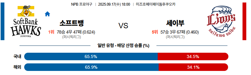 소프트뱅크 대 세이부 NPB 09월17일 맞대결 생중계, 스포츠중계, 스포츠분석