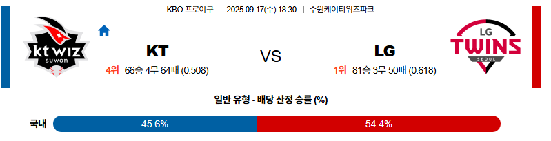 KT 대 LG KBO 09월17일 맞대결 생중계, 스포츠중계, 스포츠분석