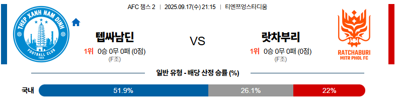 남딘 대 랏차부리 AFC챔피언스리그2 09월17일 맞대결 생중계, 스포츠중계, 스포츠분석