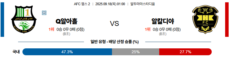 알아흘리 대 알칼리디야 AFC챔피언스리그2 09월18일 맞대결 생중계, 스포츠중계, 스포츠분석
